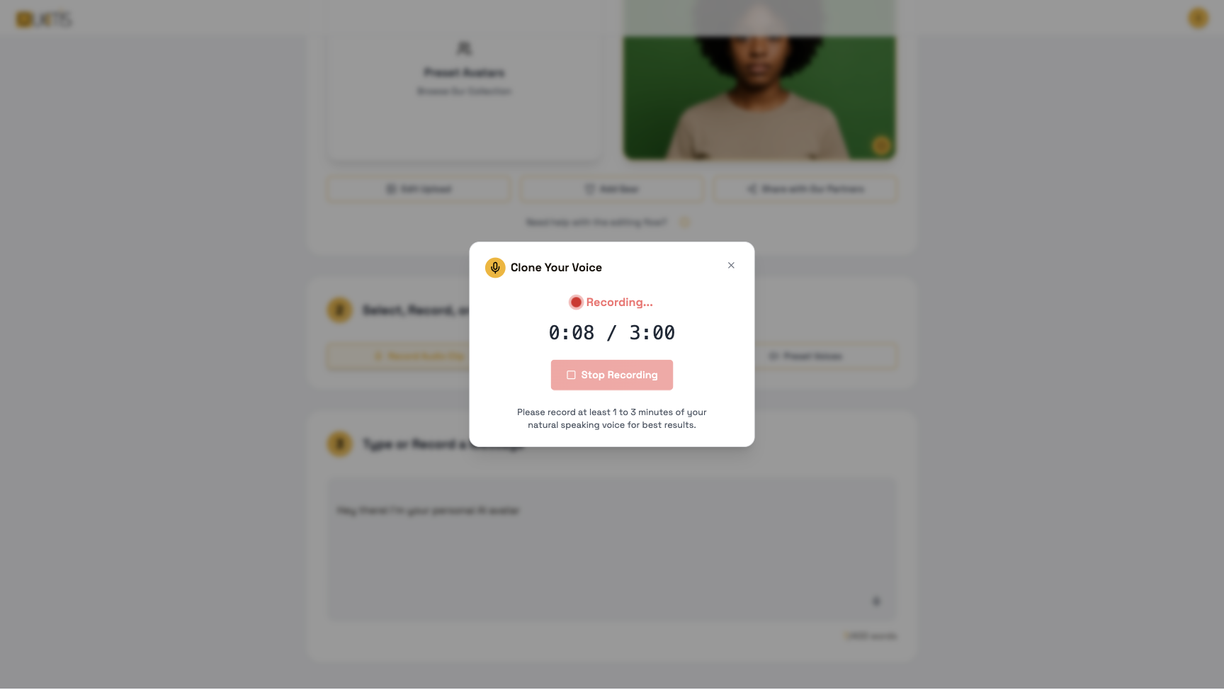 Record or upload audio to clone your voice for personalized videos